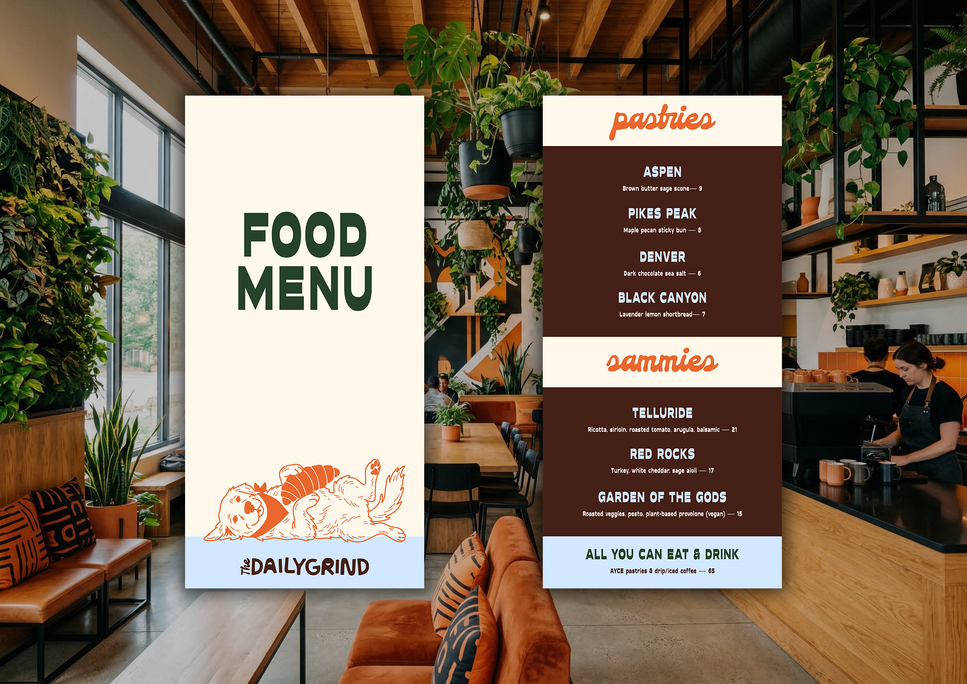 This project was in collaboration with Adobe. I crafted a fictitious coffee shop visual identity to help guide my students and showcase the expectations for the project. All the assets were created in Illustrator, and the mockups in Adobe Firefly.